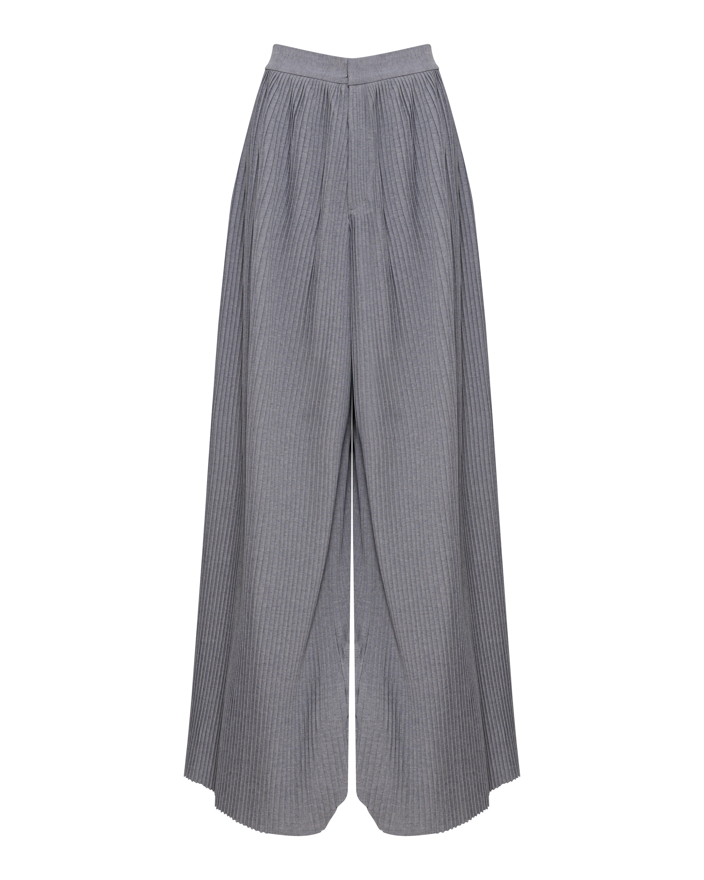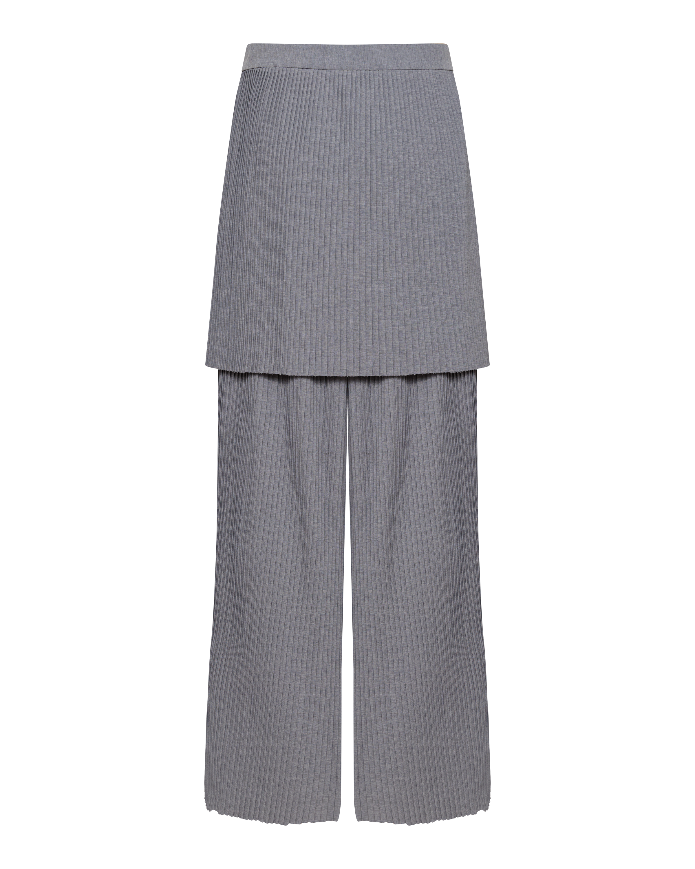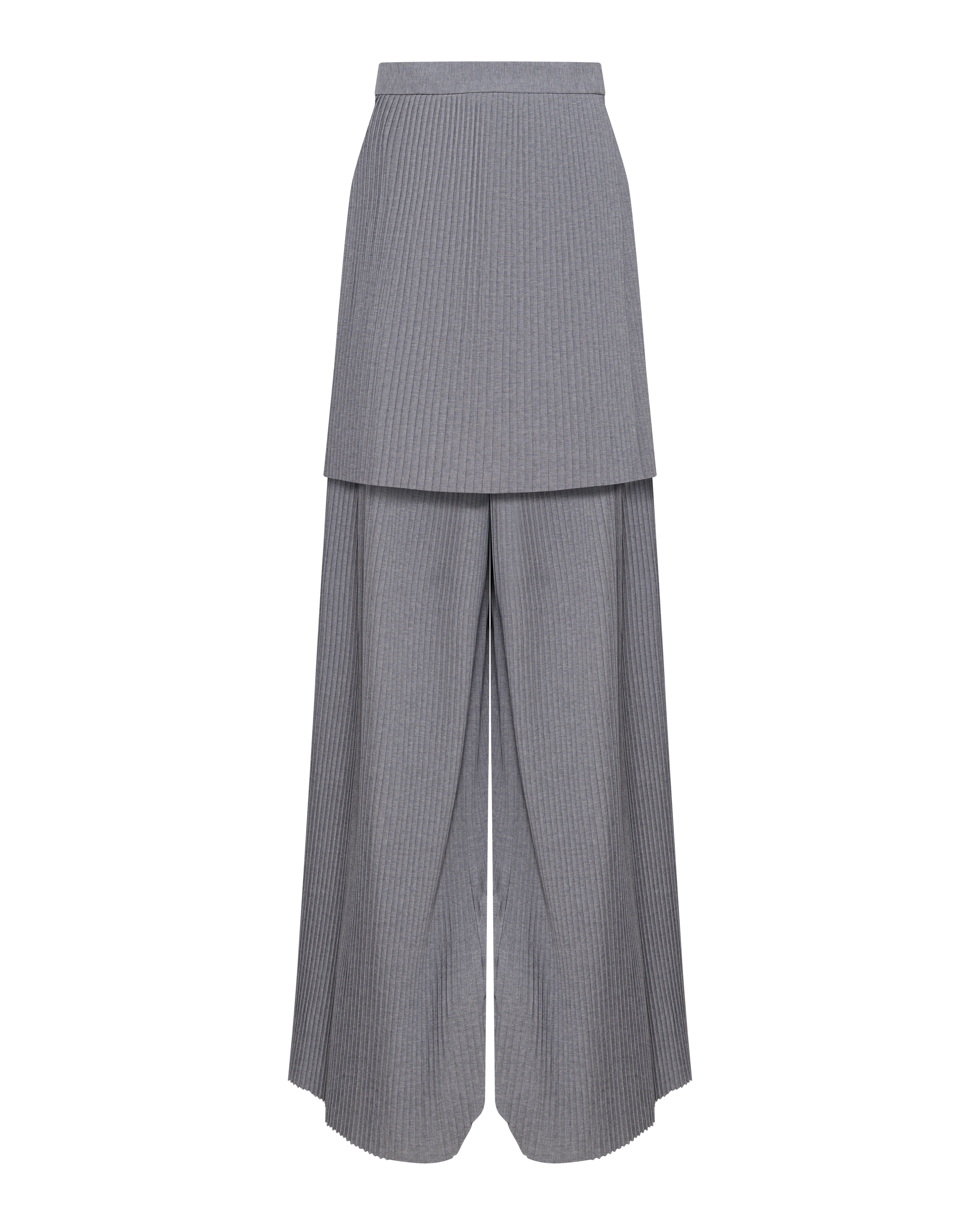 Calça Wide Leg e Saia Removível Plissadas Cinza Mescla