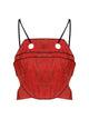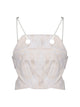 - O top tipóia é um top cropped levemente acetinado, com caimento leve e encorpado, tem um comprimento acima da cintura e pode ser transpassado envolvendo na cintura e amarrando tanto na lateral, como nas costas, possibilitando diversas formas de uso, inclusive solto como bolero. Possui manga curta 3/4
