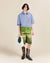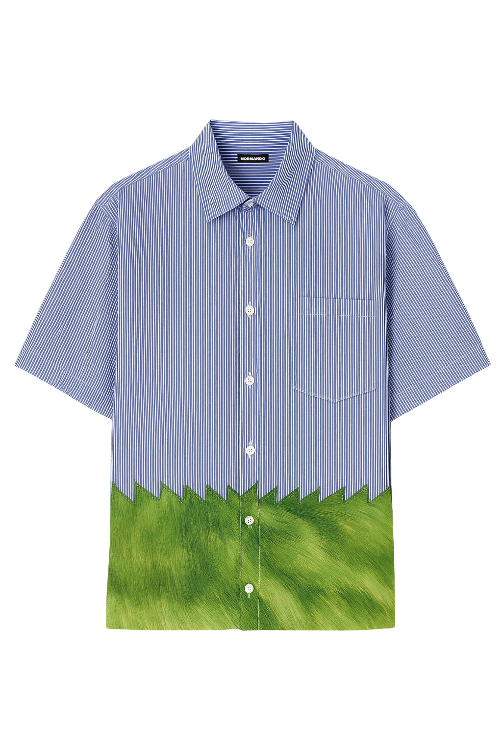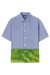 Camisa listrada em algodão, com barra na estampa "Campo Verde" em viscose EcoVero.